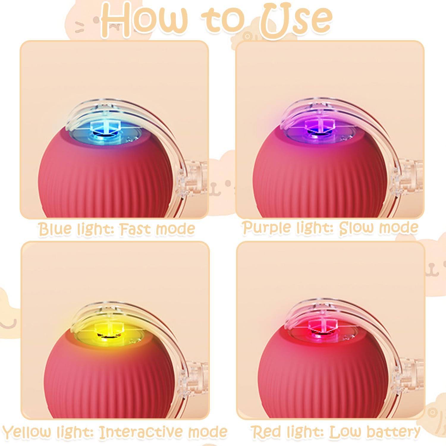 Fast Mode (Blue light) – High-speed rolling for energetic pets